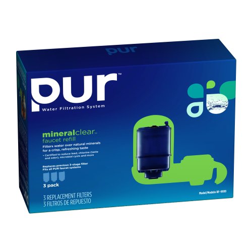 | 90 of 92 people found the following review helpful: By Amazon Verified Purchase This review is from: PUR MineralClear Faucet Refill RF-9999, 6 Pack (Tools & Home Improvement) I have been using these for about 8 years now and moved to the 3 stage when they came out. I use them primarily for drinking water and cooking. They typically last about 3 months for me. I go through a LOT of drinking water and probably less than average for cooking. Based on using them on two different water systems, I also believe the quality of the water going in makes a huge difference in the life of the filter... but then that really is just common sense isn't it? For instance, using it the week after a city wide fire hydrant flushing will use one up very quickly. I can't speak to what that means to anyone else, but it tells me it is WORKING! As another reviewer mentioned... ONE HOT WATER EPISODE WILL KILL A FILTER! It is a shame it is this way, but I have on two occasions had someone turn on hot water and let it run through the filter for a while. The filter would stop flowing within a day after that. The instructions warn against this, but... Read more 38 of 39 people found the following review helpful: By Zimminkie "Zimminkie" (TX, USA) - See all my reviews Amazon Verified Purchase This review is from: PUR MineralClear Faucet Refill RF-9999, 6 Pack (Tools & Home Improvement) I've been using these filters since 2005, and I have been ordering them online in 6 packs from this site since 2009. I'm not sure what is going on, but after the second filter change in this most recent purchase, I've come to the conclusion that these filters have been "changed" such that their performance has dramatically declined. Simply put, my water now tastes POORLY. The first thing I noticed upon receipt of this latest 6-pack, is that the outer wrapping of the individual filters is not shrink/vacuum--packed. In all previous orders these filters where vacuum-packed. Secondly, there is no product labeling on the same wrappers, which was not the case in previous orders for they were labeled. Third, the filters feel "less heavy" and feel similar to salt shakers, in that one can tell there are loose granules inside (some of which appear loosely leaked inside the packaging--white round granules), which I never noticed before. Finally, the best and most... Read more 58 of 64 people found the following review helpful: This review is from: PUR MineralClear Faucet Refill RF-9999, 6 Pack (Tools & Home Improvement) UPDATE: A few months after I posted this, PUR finally contacted me with an intelligent response. They apologized (again) and explained that their RF-9999 DOES in fact contain ion-exchange resin. I don't know whether or not I should be surprised that it took them this long to come up with a response. Perhaps they assume that most people will have no idea what ion-exchange resin is and will therefore not ask about it or look for indication of it on the packaging. Also, other people have responded to my review with useful comments. Check them out. For instance, one commenter explains this product's certifications. My original review: I own a PUR faucet attachment that takes the RF-9999 filter replacement cartridge. Out of concern for my baby girl's health, I wanted to make sure that the water we mix in her formula is free of lead and other heavy metals. The copper pipes that carry water in your house have... Read more |